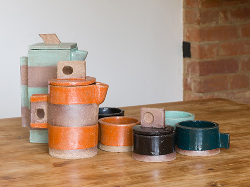 Installation views of The Grantchester Pottery's works as part of The Influence of Furniture on Love, an exhibition in Wysing’s 17th century farmhouse